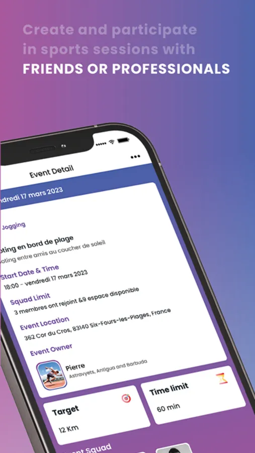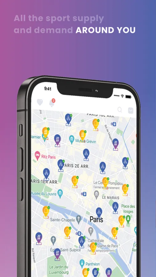 • Interactive map: find out what's going on around you that's related to sports. Find your club, a coach to improve your skills, or find an event that interests you and that you want to participate in!