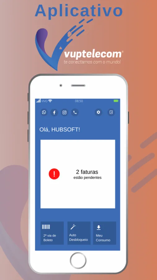 A Vup Telecom quer te manter sempre conectado e estar cada vez mais próxima de você! Com esse aplicativo você terá acesso a todas as facilidades de uma empresa conectada que prioriza a qualidade dos serviços e o bem estar de seus clientes.