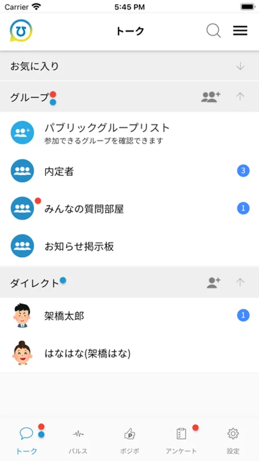 同期入社の仲間や、先輩社員とコミュニケーションを取ることで、深い関係性の構築ができます。LINEを使用しないため、プライベートと完全に切り離して利用をすることができます。