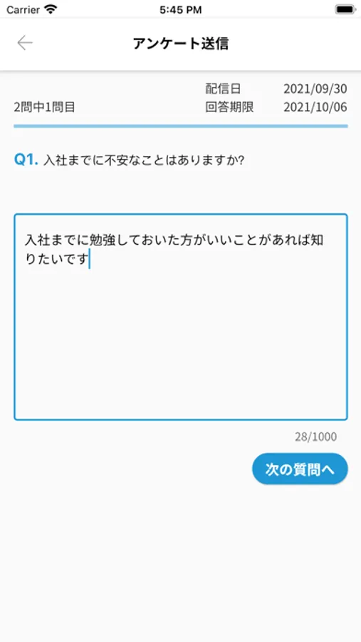 「最近のできごとをシェアしましょう!」といった簡単な質問に答えてもらい、内定者の現状を把握することができます。