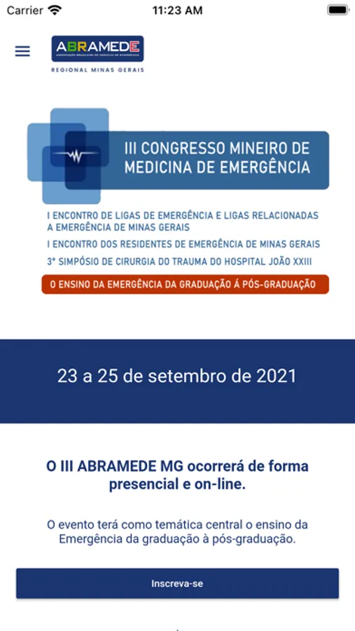 O Aplicativo do Congresso Abramede MG 2021 fornecerá informações sobre a programação, palestrantes, olimpíadas e casos clínicos do congresso que ocorrerá de forma online e presencial entre os dias 23 a 25 de setembro de 2021.
