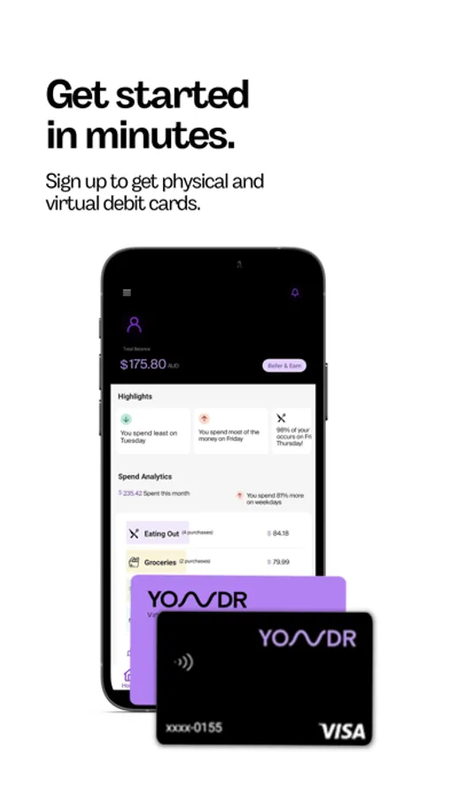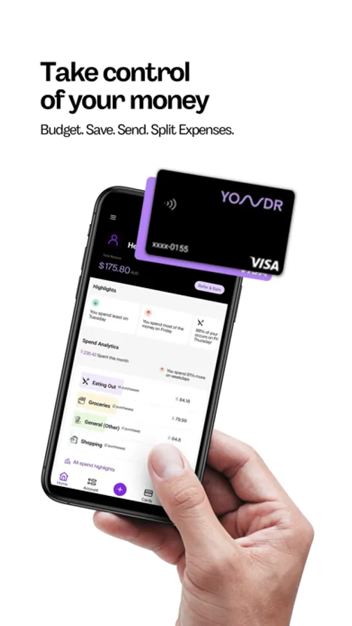 You can use Yondr to convert money at some of the best exchange rates and spend confidently with no hidden fees and no international transaction fees. Your virtual cards are powered by Visa and can be added to Apple Pay to tap and go with your phone or watch while you travel. In the app, you can check your balance or add more money through your dedicated BSB and account number. If you lose your physical card, you can easily block the card in your app and continue exploring uninterrupted. Our spend notifications will show how much you have spent in the local currency and in AUD.