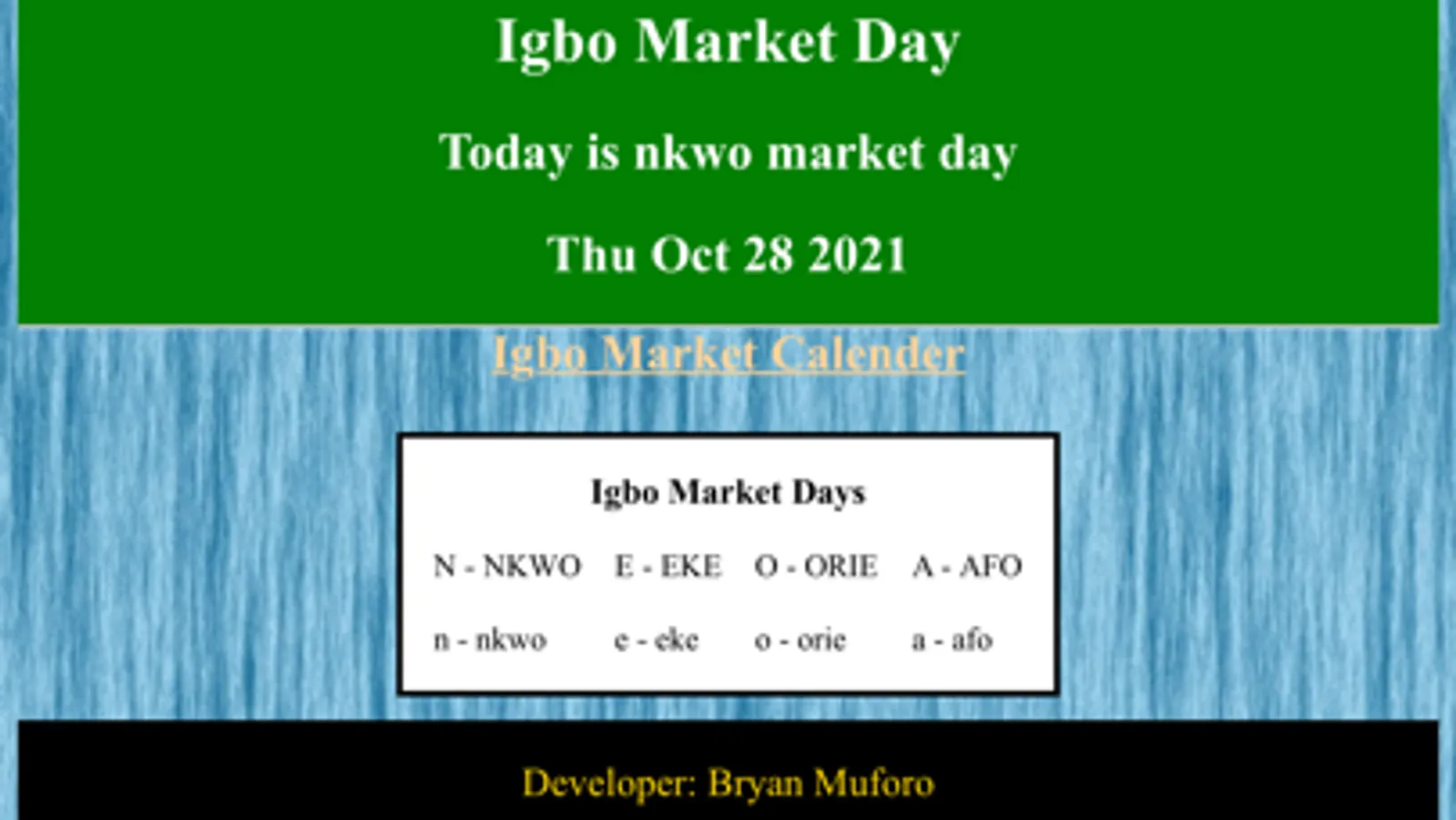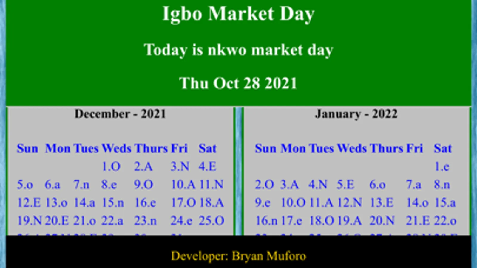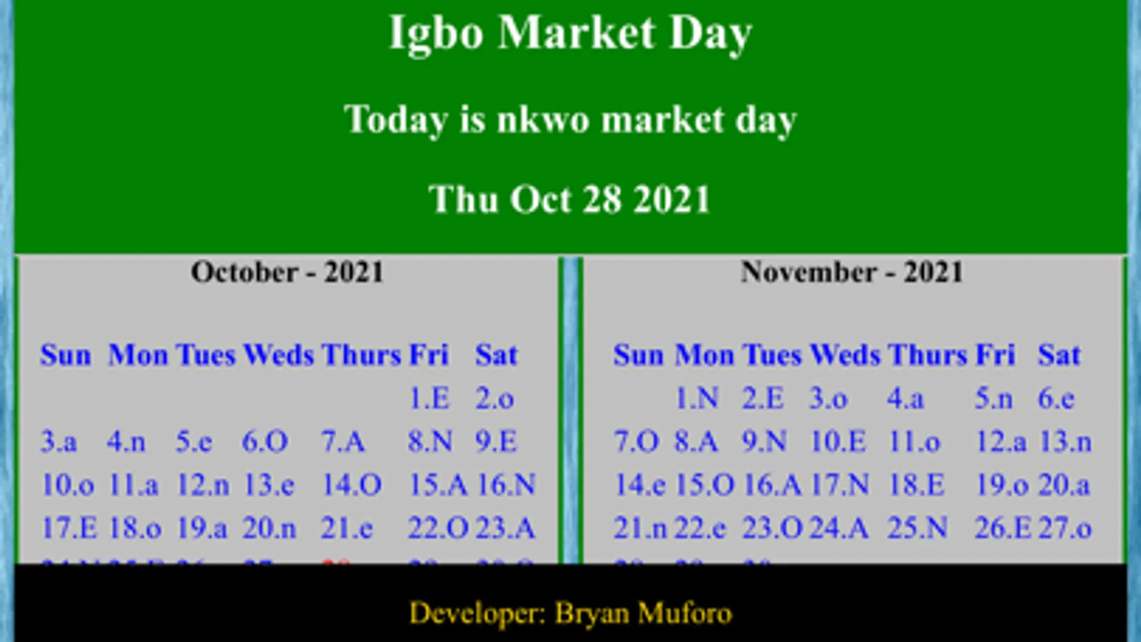 About Igbo Market Calendar