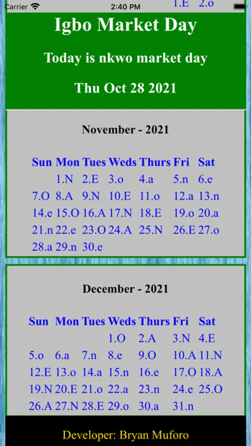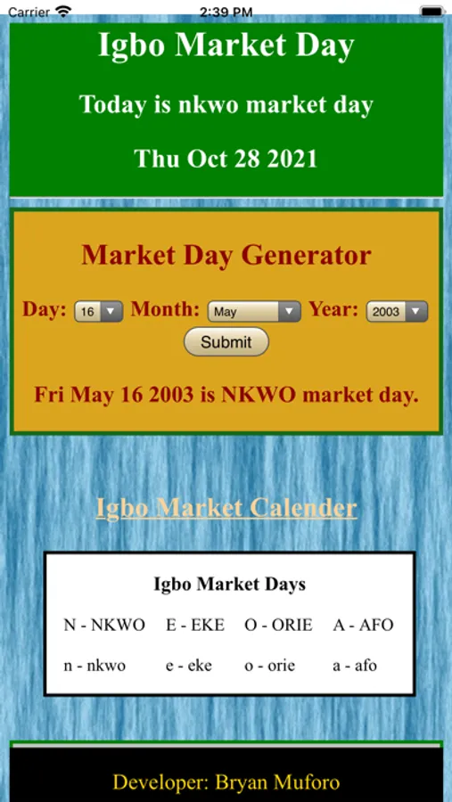 Igbo Market Calendar Screenshots