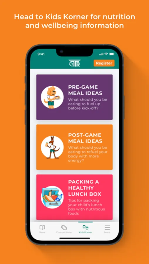Kids and their parents can have fun in Kids Korner, which is a designated kids section within the app providing fun videos that deliver key messages via animated cartoon characters. These characters educate children on the rules of Tri Tag Rugby and encourage them to eat and drink well.