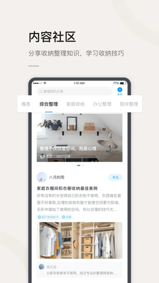 莉家生活是提供整理收纳资讯内容社区,是集空间规划资讯服务、整理收纳、课程培训于一体的综合性家居生活服务平台