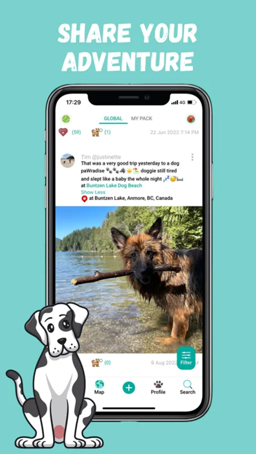 See photos and posts that your dog's friends have shared. Give their post a "Paw" or "Bark" on their post to let them know what you think! Sharing a post on DogPack allows you to tag dogs from your pack, tag your location, and tag the dog park you were at when you took the photo.