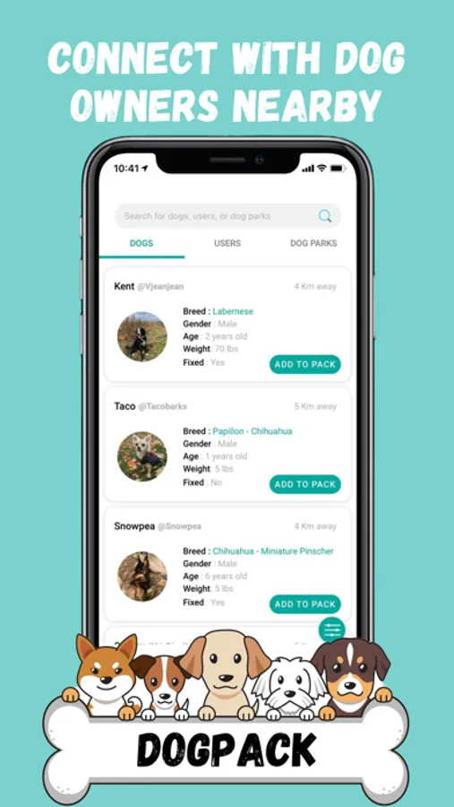 DogPack makes finding dog parks, meeting up, finding local dog services, and socializing with all your best dog pals easier. Join the community and see why so many dog owners are already using DogPack.