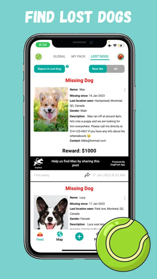 If the worst happens and Rover goes missing, you can use our platform to report the missing dog with all of its information. DogPack Members in the area where the lost dog was last seen will see the post and be able to keep an eye out for any sightings and share the post with other fellow dog owners. All lost dog posts are also sent directly as in-app notifications to everyone nearby!