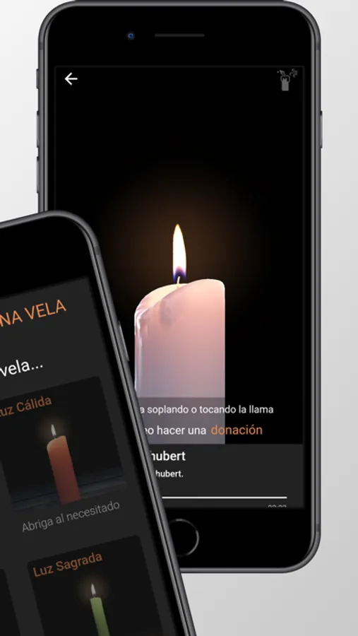 Nothing better to fall asleep than the "Sleep" utility: sounds that lull you to sleep (nature, rain, wind, relaxation) wrapped in the light of your favorite candle. And don't forget about HolyShop; the Humanlight store that helps those who need it most.