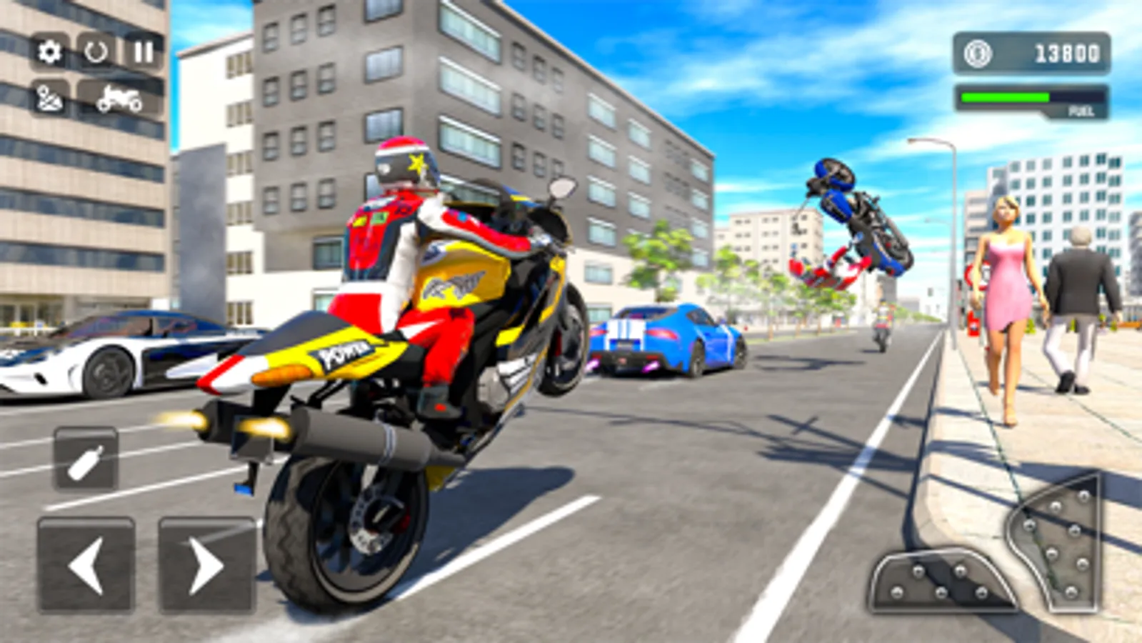 To be the best bike rider, choose the best motorcycle to drive. If you are into bikes or bike riding, then this simulator game is definitely for you. There are a variety of stylish bikes to pick from and specifically-built high-detail mechanisms that are ready to battle in this realistic and challenging bike game. During rush hour, you can control your motorcycle at astonishing speeds! To improve your bike's speed, press the turbo boost button. It's all about having a good time in this Drive Stunt Bike Simulator game! With a range of sports bike models to pick from, you can outdo your expectations when it comes to executing feats. Get ready to show off your riding and racing skills.