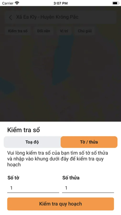 - Tra cứu thông tin quy hoạch theo số tờ - số thửa của sổ đỏ.