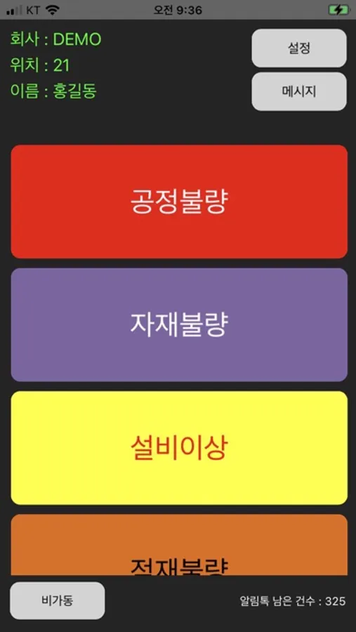 생산 설비내 생산문제/고장/이상등 이슈 발생 시 알림을 활용해
