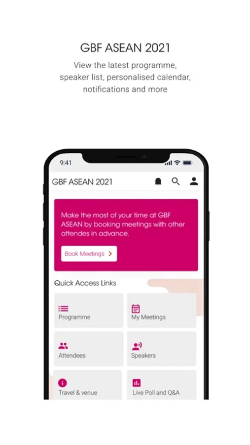 We have created a personalised mobile application to give you complete control over your experience at GBF ASEAN. View the sessions you would like to attend, schedule meetings with other delegates and participate in live polls.