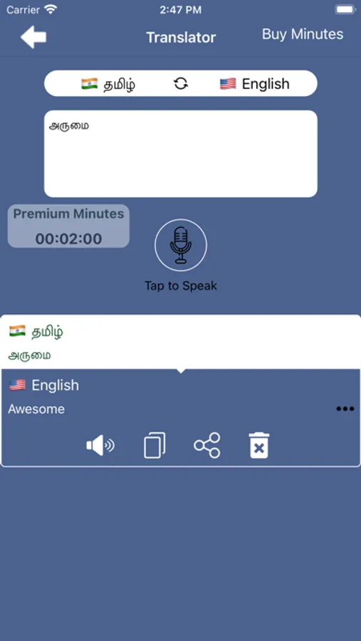 Along with Tamil Keyboard you will get Tamil to English Voice Translation feature with which you can very easily translate Tamil Language to English Language.