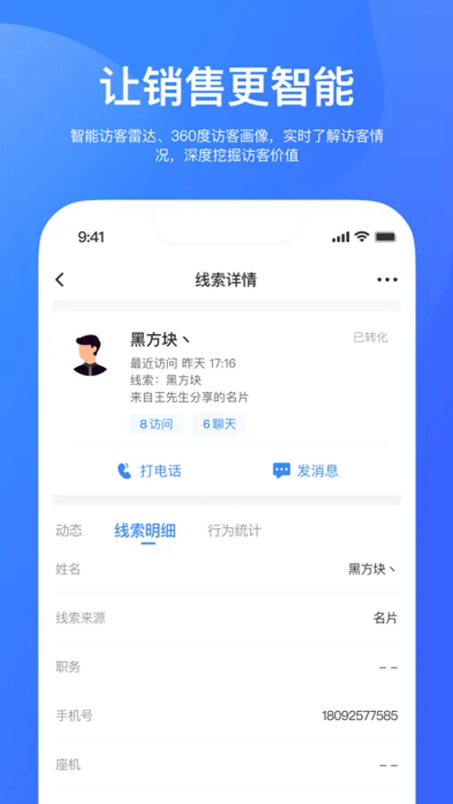 客户行为洞察采集,实时推送销售,提高公司客户流程转化;