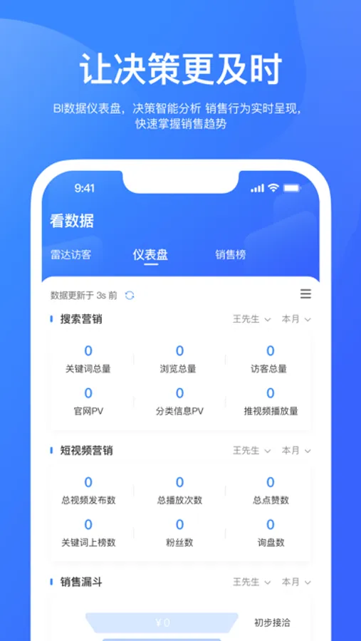 仪表盘、销售榜,业绩报表一目了然,全方位把控员工获客和客户情况,提升人效。