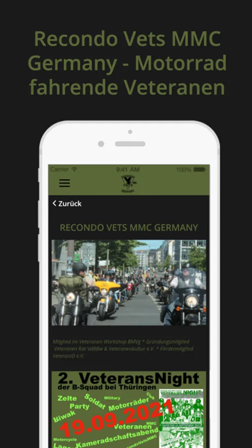 Mit der App ermöglichen wir euch über aktuelle Informationen und Termine aus dem Bereich der Motorrad fahrenden Veteranen / Soldaten zu erhalten.