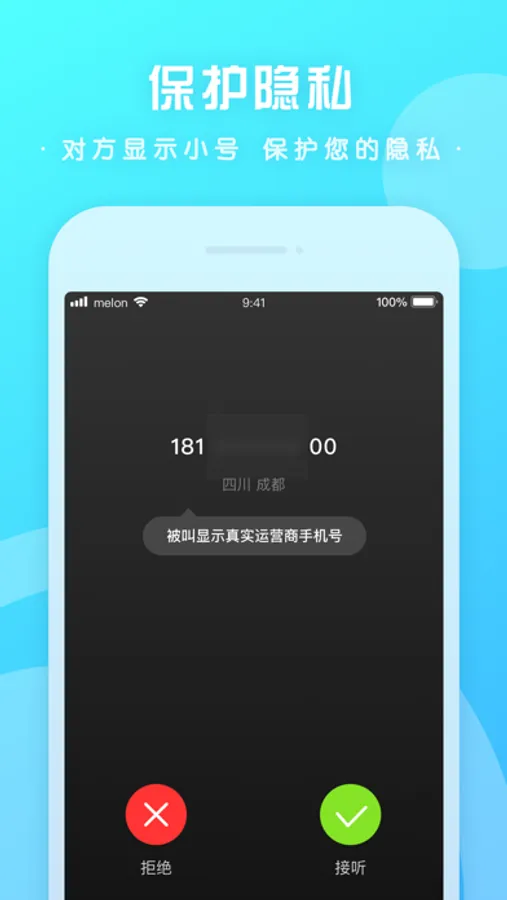 呼出的电话均会分配加密的小号,实现接听方信息阻断,接听方来电显示小号号码,保护本机号码不泄露。