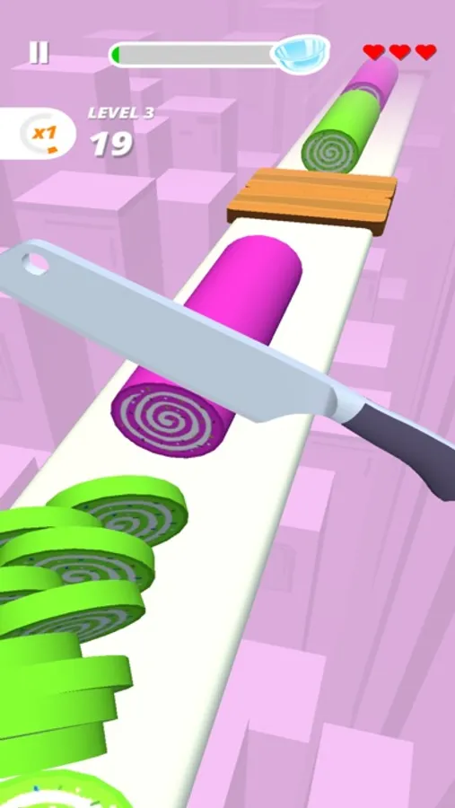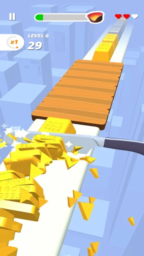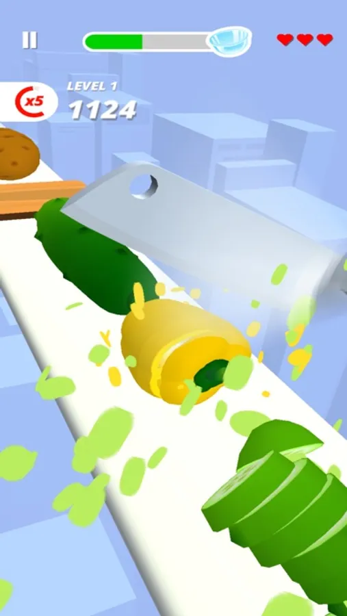 To perfectly slice fruits & veggies with different cutting styles, you have to tap and hold the mobile screen and listen the knife Sounds.