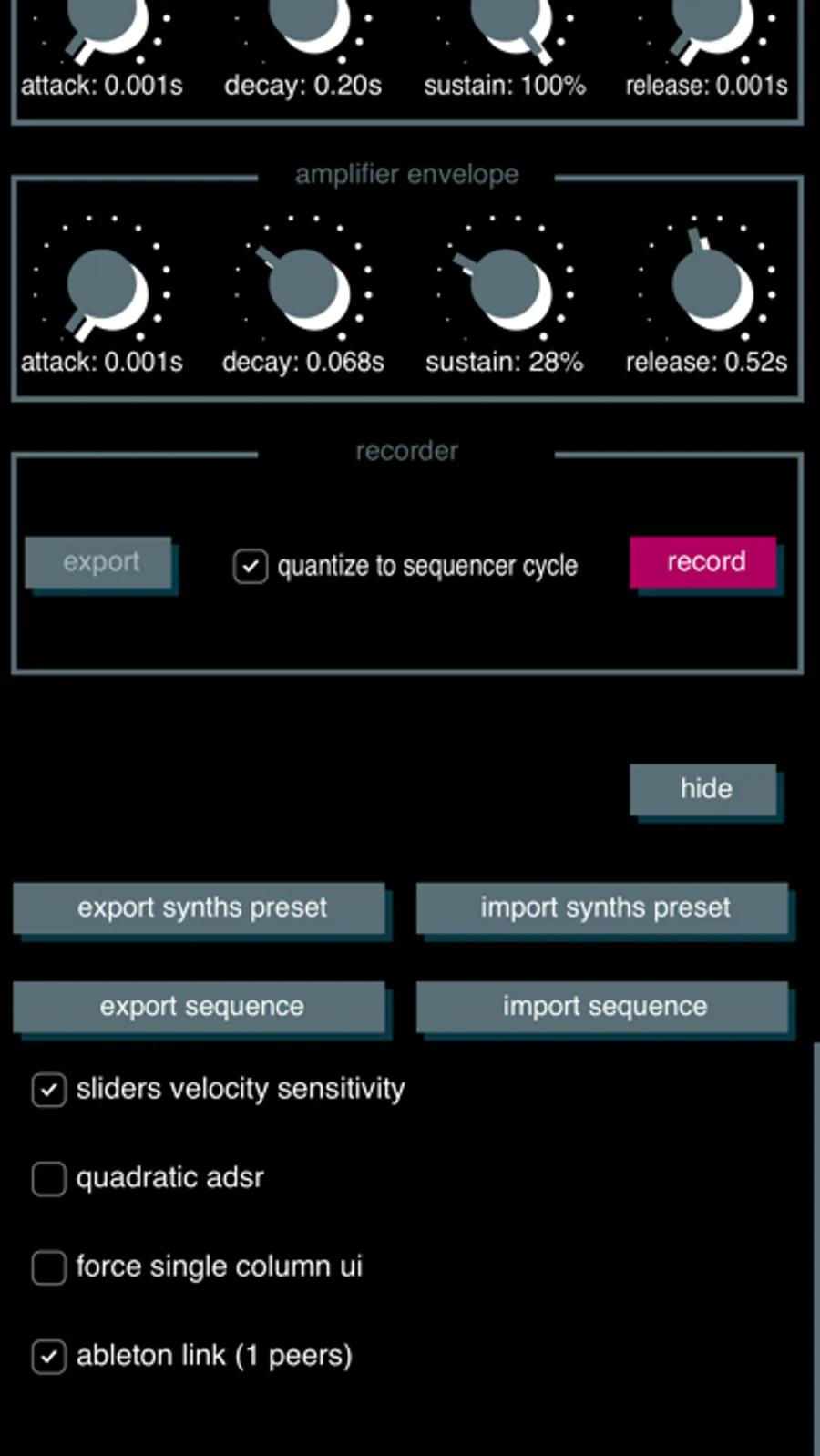 - 8-voice synth and sequencer can be used as separate AudioUnits