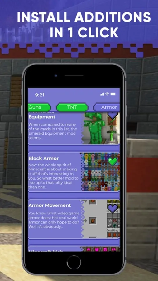 Guns and Weapons for Minecraft DISCLAIMER: This is an unofficial application for Minecraft. This application is not affiliated in any way with Mojang AB. The Minecraft Name, the Minecraft Brand, and the Minecraft Assets are all property of Mojang AB or their respectful owner. All rights reserved. In accordance with https://www.minecraft.net/en-us/terms#terms-brand_guidelines