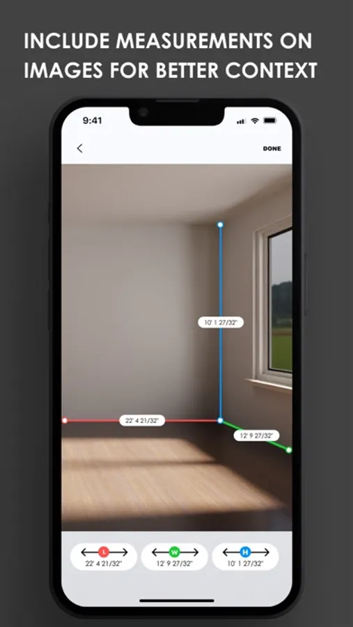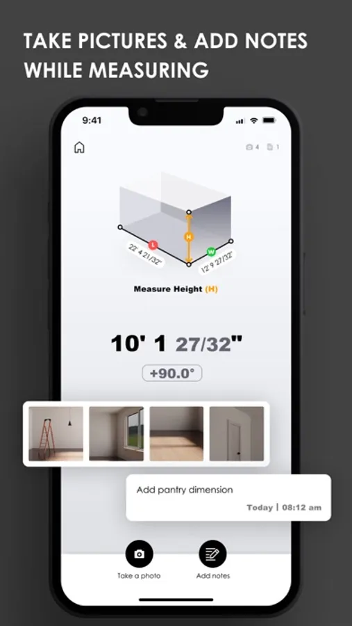 - You can superimpose the measurements you captured from the laser device onto the images you captured via the smartphone. This will eliminate any confusion on which measurement belonged to which wall.