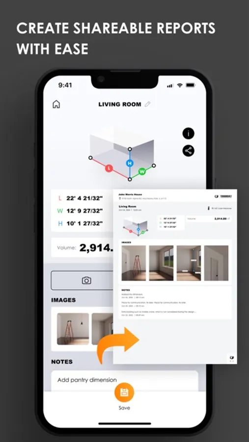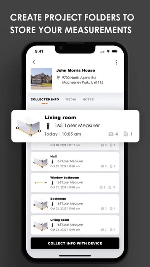 You no longer have to juggle the laser device, notepad and pencil and your smartphone. Instead let the app capture and document your measurements in an organized fashion.
