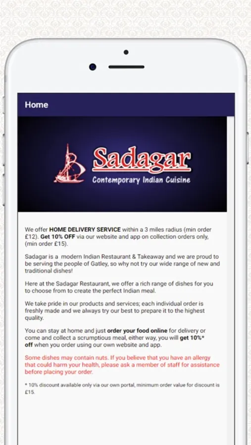 We offer HOME DELIVERY SERVICE within a 3 miles radius (min order £12, Service Charges Apply). Get 10% OFF via our website and app on collection orders only, (min order £15).
