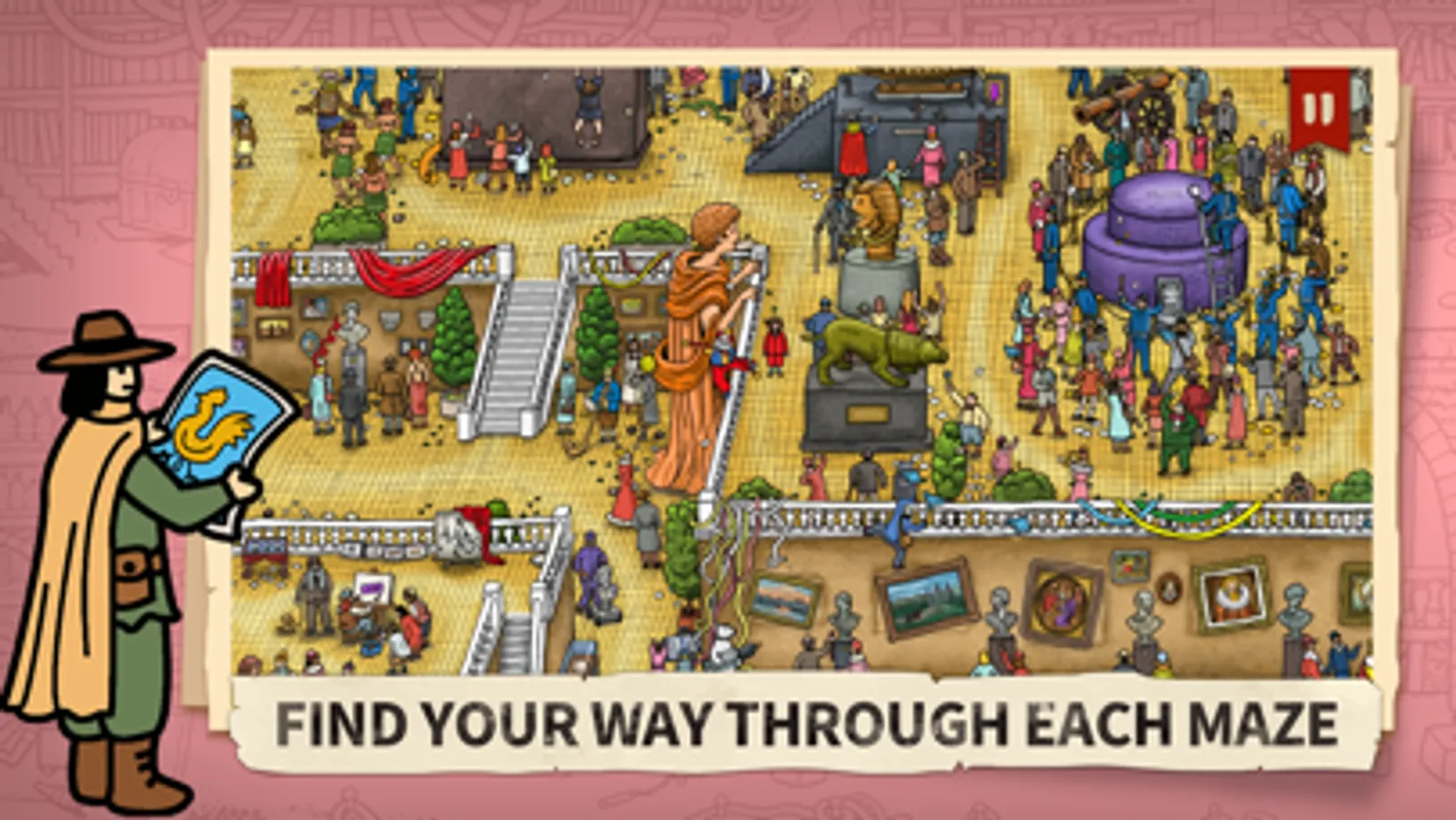 You play as Pierre, Opera City's renowned maze detective, and you must retrieve the Maze Stone stolen by the notorious thief Mr. X! Without you, Opera City is doomed, as the Maze Stone has the power to turn everything around it into an intricate labyrinth. "Beautiful and cute puzzle games are fine and all," I hear you say, "but what about the challenge?". A fine question! In a maze, although there is only one true path to the exit, there are countless trails to hidden treasures and mini-games. So pay close attention while exploring Opera City and you will be pleasantly surprised.