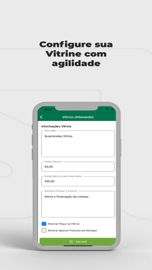 É uma forma prática e rápida de configurar sua Vitrine, e o melhor: tudo é sincronizado com o sistema web.