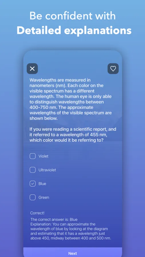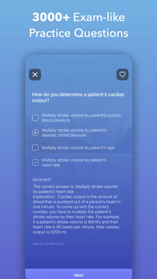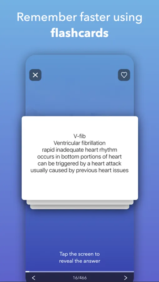 Swipe the cards to quickly review AEMT concepts without the need to go through the whole test, complete the right amount of questions for you, and get some quick studying in.