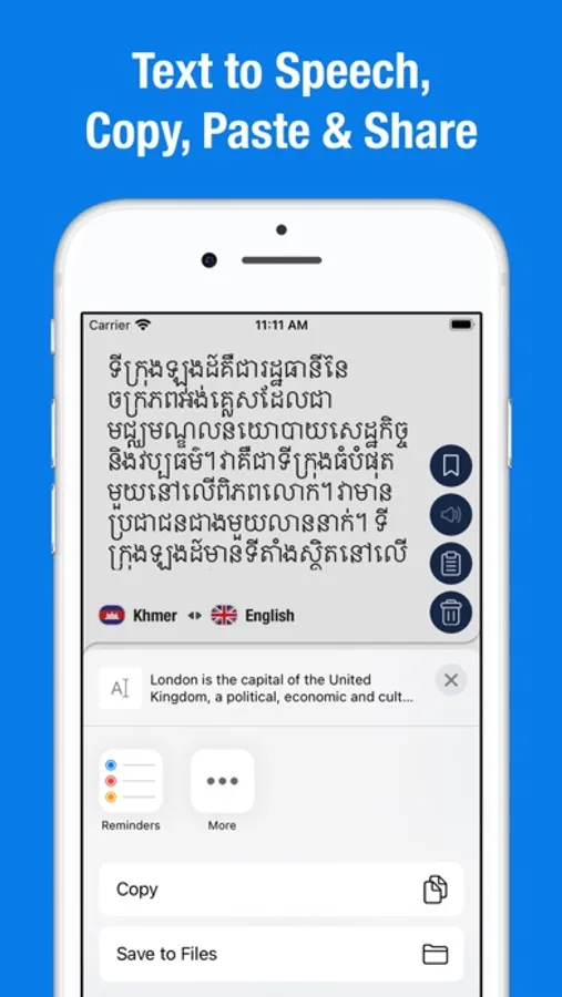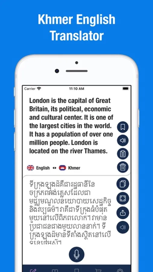 It is a translation tool that helps you break down language barriers. Excellent app for all who makes the first steps in learning Khmer. Intuitive interface, easy navigation, quick result. Begin conversations confidently!