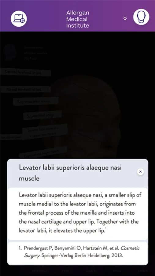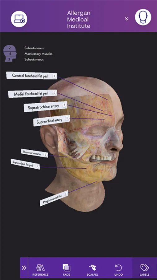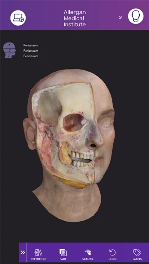 The AMI Facial Anatomy and Cadaver App is a teaching tool that uses a virtual cadaver model that has been digitally reconstituted, with a high degree of realism, from a cadaver dissection done in an anatomy lab. Experience it in 360- degree view with layers of tissue dissected to understand the anatomical structure better.
