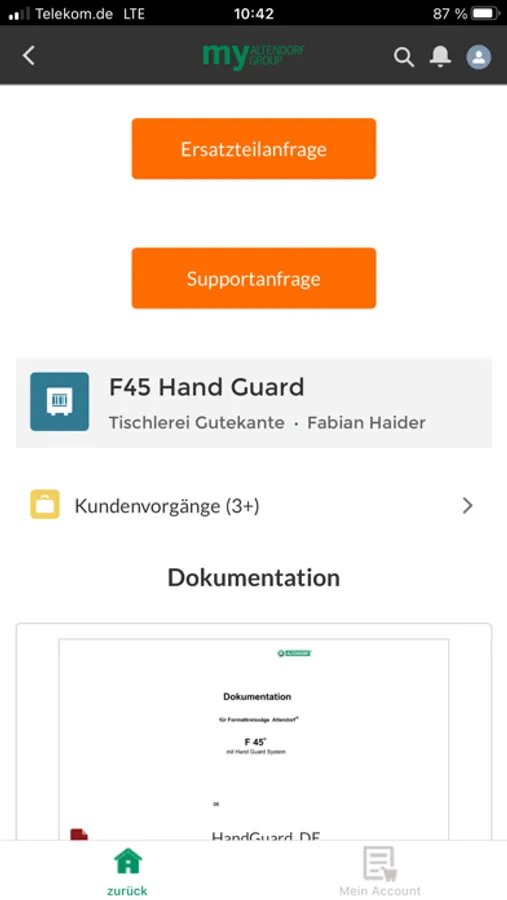 Die neue ALTENDORF GROUP App ist der schnellste Weg für jeden Handwerker und Maschinenführer, mit dem Service und Vertrieb von ALTENDORF und HEBROCK Kontakt aufzunehmen. Wir melden uns persönlich zurück und helfen Ihnen bei allen Fragen rund um Ihre ALTENDORF- und HEBROCK- Maschine. Anwendungsfragen, Störungen und Ersatzteilanfragen werden wie gewohnt von Ihrem erfahrenen ALTENDORF/HEBROCK Service Spezialist bearbeitet. Jetzt mit VideoSupport zur besseren Analyse oder per einfachem Chatsupport.