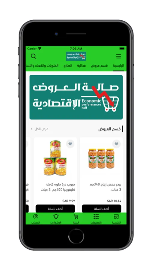 يمكنك الان شراء المواد الغذائيه والإستهلاكيه من متجر صالة العروض الإقتصادية وانت في بيتك بنفس اسعار المركز وكانك تتجول في صالة العرض بنفسك.