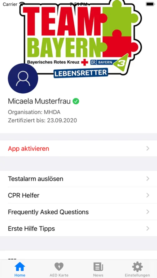 - Du brauchst dann die TEAM BAYERN Lebensretter App
