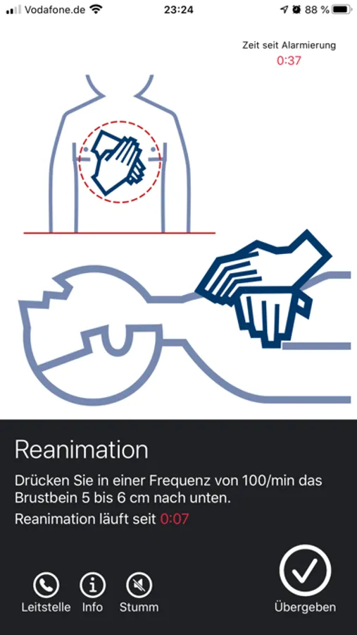 sondern unterstützt auch bei der Wiederbelebungsmaßnahme selbst. Der Einsatz ist und bleibt aber immer freiwillig und kann auch jederzeit über die App