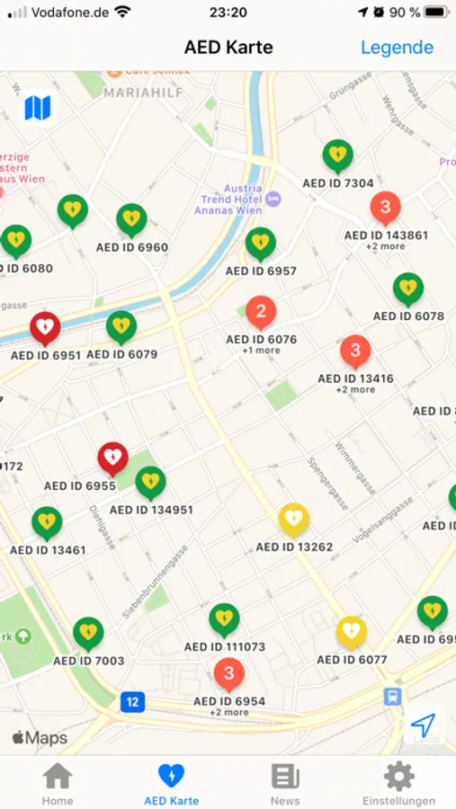 Auch ein oft lebensrettender Defibrillator kann schnell ge-bracht werden. Die App steht dabei immer unterstützend zur Seite und zeigt nicht nur den Weg