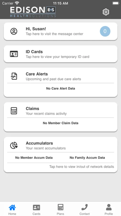 Edison Health Solution's member self-service mobile application, powered by VBAGateway. Members can access information on their claims, deductibles, plans, accumulators, and access to their ID cards, all on the go.