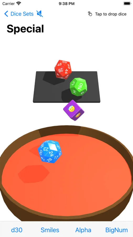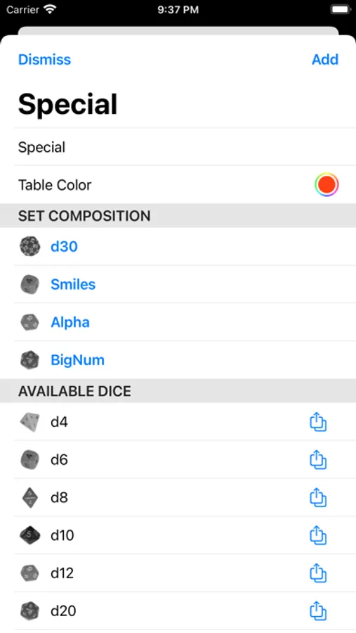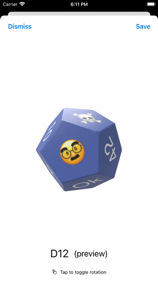 Create dice with shape, color and values/text/emoji of your choice; associate them in as many groups as you want, so you will always have the right dice ready for your favorite games.