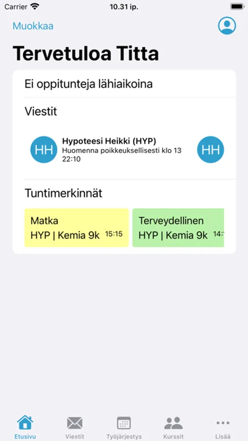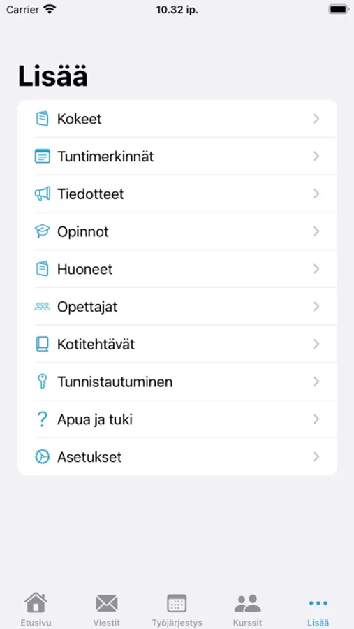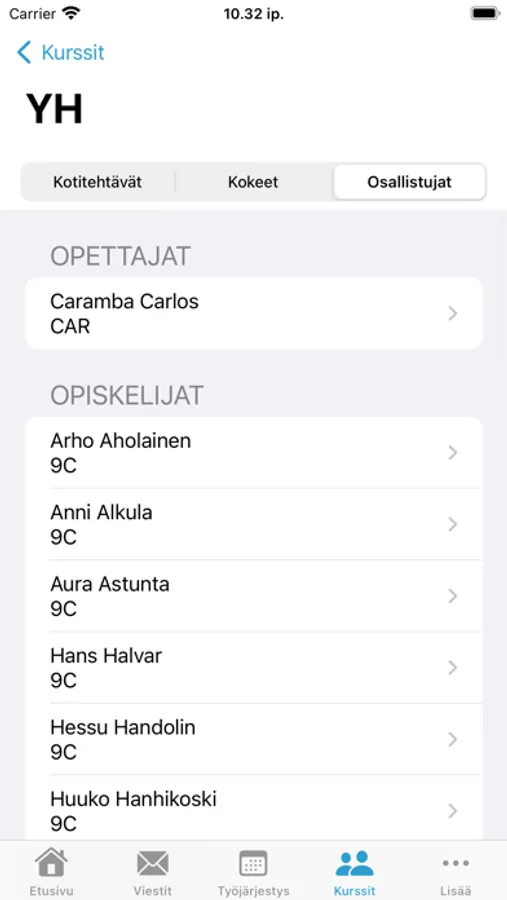 - Oppilaslista (opettajille sekä opiskelijoille)