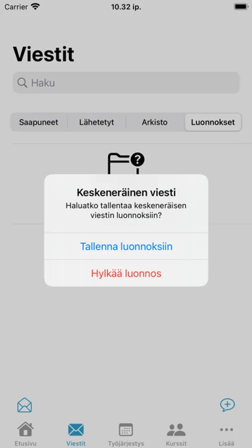 - Viestien haku (hakusanaksi lähettäjän nimi tai viestin otsikko)
