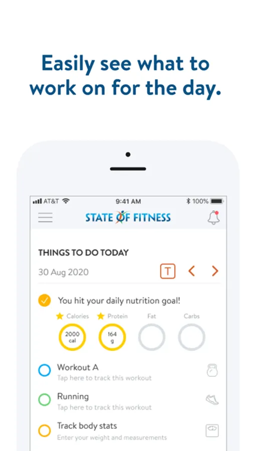 With the My State of Fitness App, you can start tracking your workouts and meals, measuring results, and achieving your fitness goals, all with the help of your personal trainer.