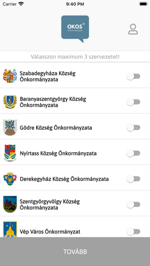 Az alkalmazás letöltés és telepítése után a felhasználó elfogadja a felhasználási feltételeket, majd egy választékból beállítja a fogadni kívánt üzenetek feladóit (települési önkormányzatokat). Itt több önkormányzat is kiválasztható, ekkor valamennyi kiválasztott önkormányzat értesítése megjelenik.