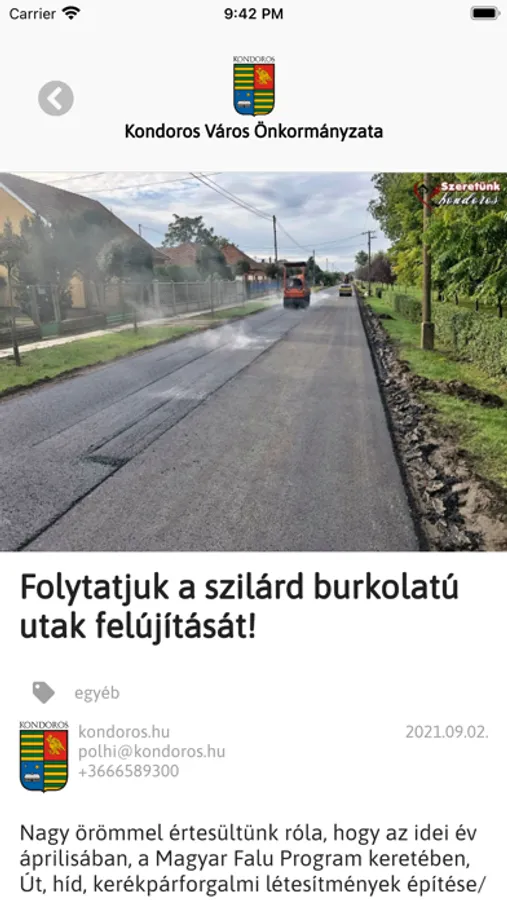 Kiválasztás után egy közös hírfolyamban megjelenik valamennyi kiválasztott önkormányzat üzenete. (Mellékletek lehetnek: képek, videók, linkek.)