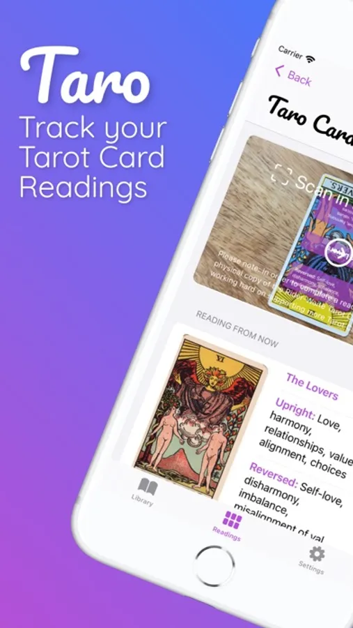 - AR Reader: Displaying real-time AR labels on top of physical Tarot Cards with the using your device's camera (iPhone/iPad only)