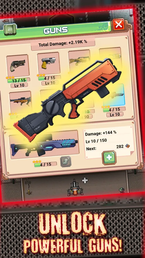 Idle Zombie Shelter is an idle game where you fight against waves of zombies to get gold and resources. Use resources to build and upgrade your own shelter. The bigger your shelter becomes, the more survivors will come and give you useful items and resources. Use all your collected resources and upgrade your weapons, hire new soldiers and get to the top in the multiplayer rankings.