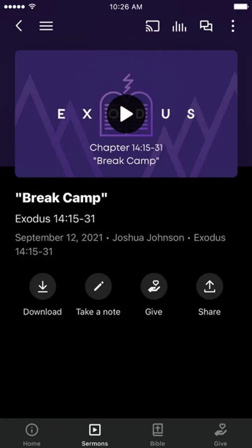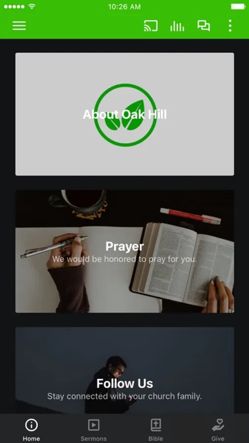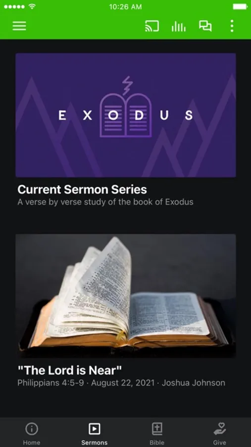 This app will help you stay connected with the day-to-day life of our church. With this app you can: watch or listen to past messages; stay up to date with push notifications; share your favorite messages via Twitter, Facebook, or email; and download messages for offline listening.