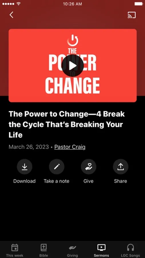 This app will help you stay connected with the day-to-day life of Life Gate Church of Lafayette, GA. With this app you can: watch or listen to past messages; stay up to date with push notifications; share your favorite messages via Twitter, Facebook, or email; and download messages for offline listening.